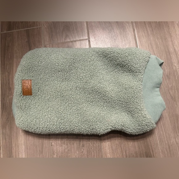 Soft sherpa dog sweater in light green. Perfect for keeping your pet warm and stylish.