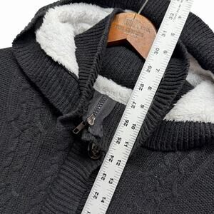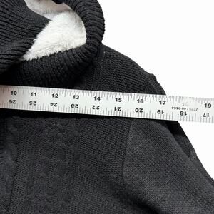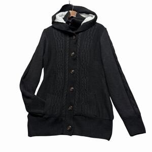 Cozy Sherpa Lined Cable Knit Hoodie Cardigan Sweater Black Sz M Button Zip Front