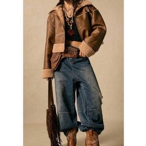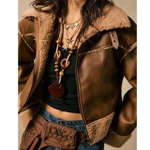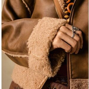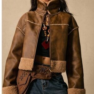Cozy Sherpa Lined Vegan Leather Zip up Oversized Jacket