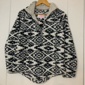 Cozy Sherpa Quarter Zip Pullover Fleece Black and White Aztec Print Size Small