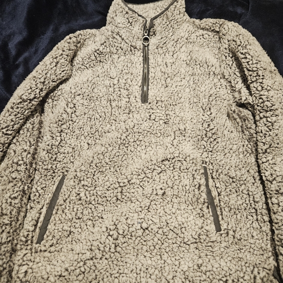 Stay warm with this cozy sherpa quarter-zip pullover. Features a soft texture and convenient pockets.