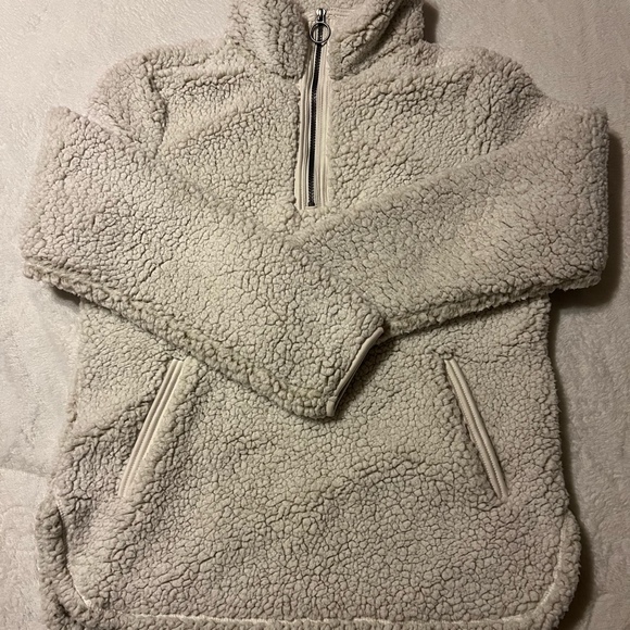 Cozy Sherpa Women’s White Quarter Zip Pullover with front pocket size Medium