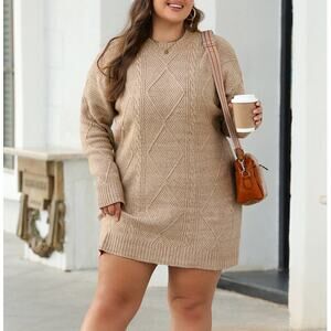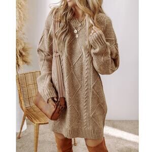 Cozy Solid Cable Knit Oversized Sweater Dress- Drop Shoulder Loose Fit Sweater