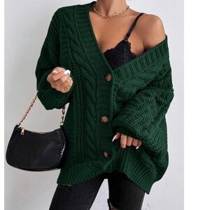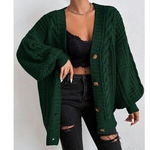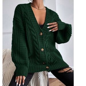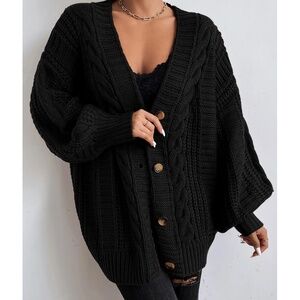 Cozy Solid Chunky cable Knit Button down Oversized Cardigan