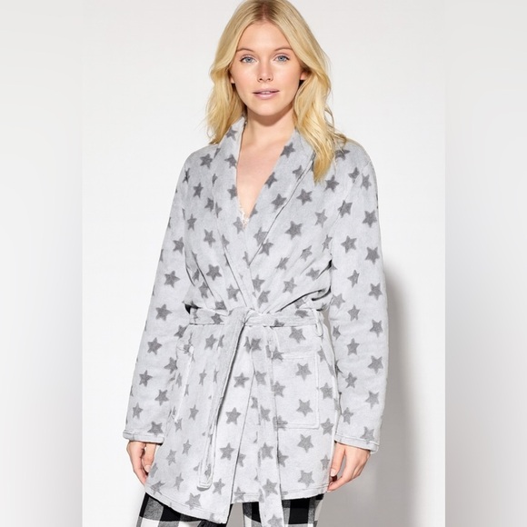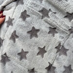 Wrap yourself in comfort with this cozy gray robe featuring a charming star pattern. It was never worn - there is a little whole at the back which is an easy fix - accepting offers!