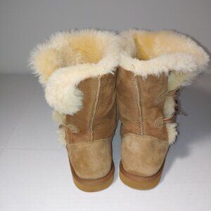 Cozie Steps Genuine Sheepskin 2 Side Buttons Booties Size 8 Brown/Cream