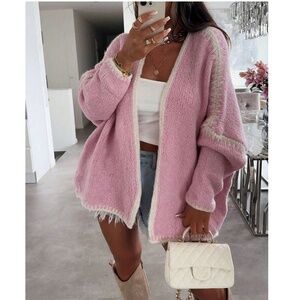 Cozy Stitch Detail Open Front oversized Cardigan