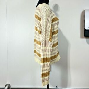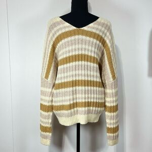 Cozy Striped Women’s V-Neck Sweater Cream Brown Lavender