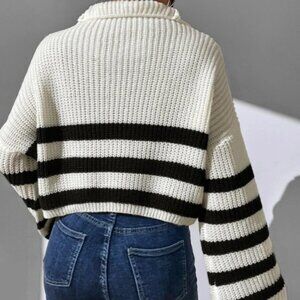 Cozy Striped Zipper Knit oversized Sweater