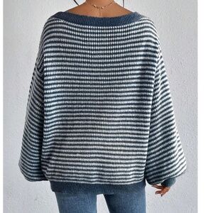 Cozy Striped oversized Balloon Sleeve Sweater Top