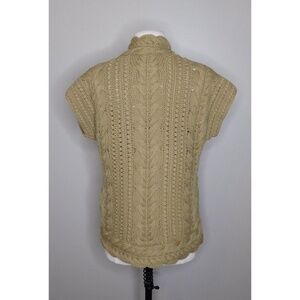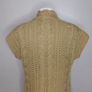 Stay warm and stylish with this cozy tan cable knit sweater. Perfect for layering and adding a touch of elegance to any outfit.