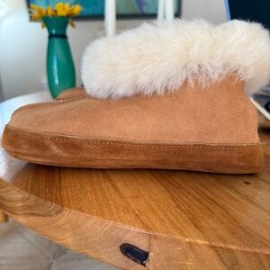 Cozy Tan Genuine Sheepskin Cabin Slippers Women's Size 7/Men's Size 6