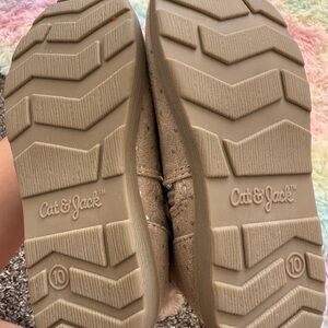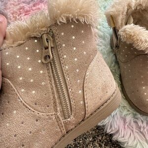 Keep your child's feet warm and stylish with these cozy tan boots. Featuring a soft faux fur lining, these boots are perfect for chilly days. Good as new.
