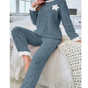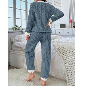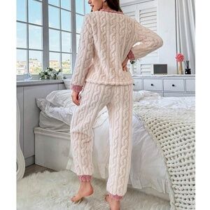 Cozy Teddy Textured Color Block Pajamas Lounge Set
