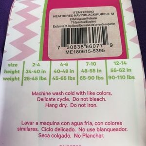 Sz. M (4-6yrs) (sz. guide in photos) : Height : 40 - 80". Weight : 45 - 65"