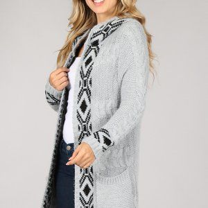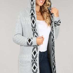 The Coziest Native Tribal Inspired Print Hooded Cardigan Sweater.