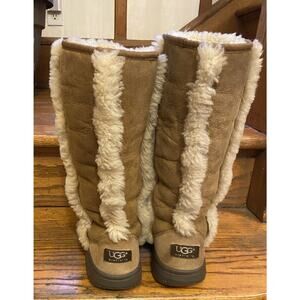 Cozy UGG Sunburst Tall Boots Women’s 7 Chestnut Sheepskin Shearling 5218 Winter
