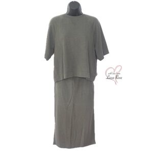 Originally sold separately, but made into a cozy set just for you from me. This cropped short sleeved sweatshirt and matching midi sweat-skirt are all you'll need to be comfortable and stylish year round. Please note that the top is size small and runs large and the skirt is size extra large and runs small. I would recommend the set for a loose fitting size 10 or a form fitting size 12.
