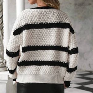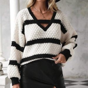 Cozy V neck Oversized Color Block Sweater Top