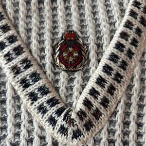 Stay warm and stylish with this cozy knit sweater. Featuring a classic cream and black pattern, it's perfect for any casual outing.