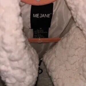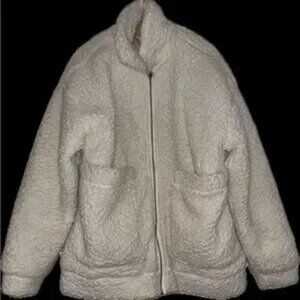 Cozy White Sherpa Jacket with a cream zip-front design, like new, from the Jane
