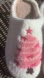 Soft white slippers featuring a pink tree design. Perfect for comfort and style.