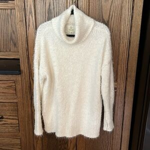 Stay warm and stylish with this cozy white turtleneck sweater. Perfect for any occasion.
