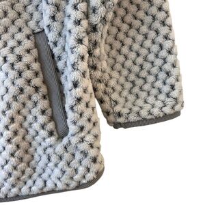 Soft pullover with a stylish pattern. Features a buttoned chest pocket and side pockets. Perfect for chilly days.