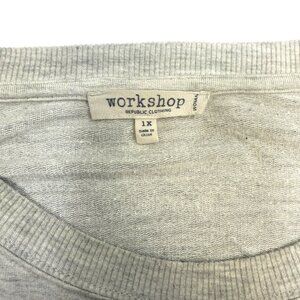 Cozy and stylish Workshop Republic sweatshirt in a soft gray fabric with black star print. Women’s size 1X.