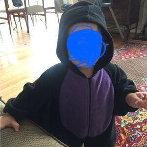Adorable costume that is super cozy for trick-or-treat. The costume has wings and little ears on the hood. Very good condition