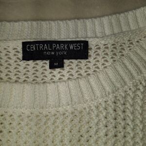 Cozy + chic Central Park West cream knit sweater in excellent condition, size Meduim. Features a beautiful textured pointelle pattern, relaxed fit, and soft midweight feel—perfect for layering all season. Boutique-quality construction with a flattering slightly cropped silhouette that pairs effortlessly with denim or trousers. A timeless neutral that elevates any wardrobe. Size M, true to size. No flaws.