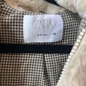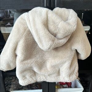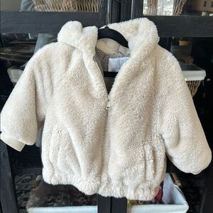 Soft and stylish fuzzy jacket. Perfect for chilly days. Features a hood for extra warmth. Has pockets. From Zara 2-3 years.