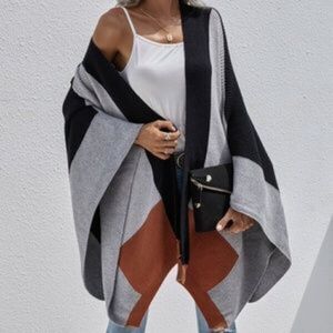 Cozy Grey Black Oversized Open front Shawl Poncho