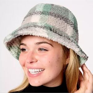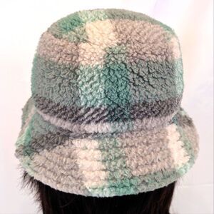Cozy Koolaburra Sherpa Bucket Hat in Tinted Sage Plaid
