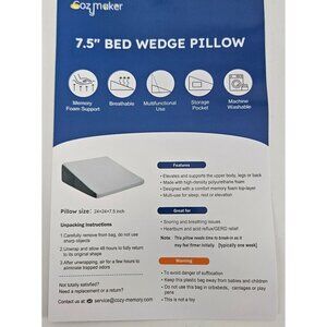 In a world where comfort is king, the CozyMaker Memory Foam Wedge Pillow reigns supreme. Designed for restful sleep and relief, its ergonomic shape supports your back, elevates your legs, and cradles you in tranquility. With a side pocket for convenience, it's a bedtime companion for those who seek solace in slumber.