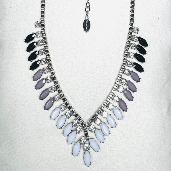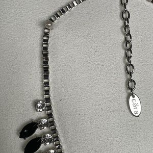 Gorgeous Cära Couture statement necklace. New adjustable black white grey and clear rhinestones with silver tone chain.