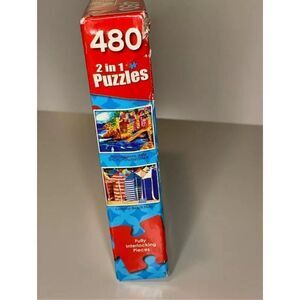 Cra-Z-Art - 2 in 1 Riomaggiore, Italy and Colorful Beach Huts - 480 Piece Puzzle.