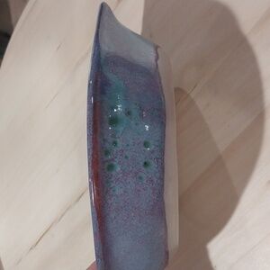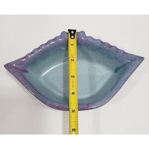 Coastal Beach Cottagecore Art Pottery Blue Purple Crab Shaped Dish Bowl Glazed Stoneware Signed 8"