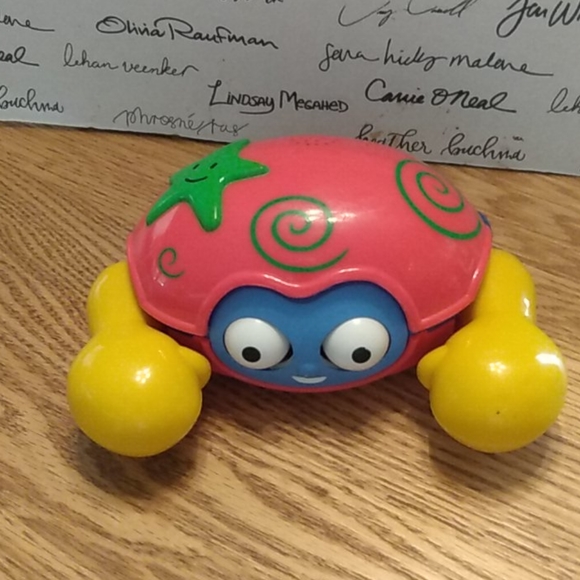 Baby wheel toy for walks/ crawls on ground floor, carpet etc. Measure 5" by 6". Good condition. Makes little noise and has eye movement which attract babies.