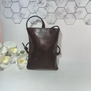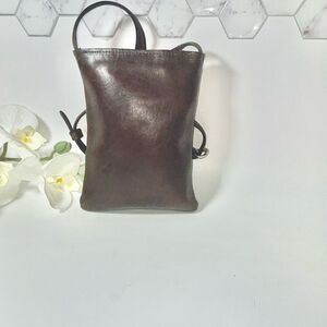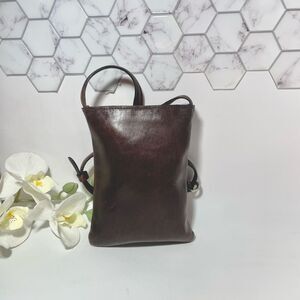 This crossbody bag combines elegance and practicality with its sleek design and polished brown leather finish. The silver-toned hardware adds a touch of modern sophistication, making it a versatile accessory for any occasion.