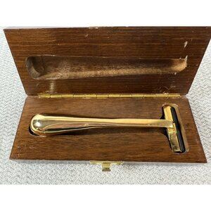 Crabtree & Evelyn Gold Tone Razor in Wood Box Case Made in London Vintage