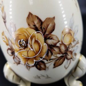 Vintage Napco Ware Cracked Egg Footed Porcelain Vase Dish Planter Cream Yellow Brown Gold Floral Flower 6H3199/L Hand Painted
