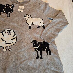 Cracker Barrel Astrologie Small S Sheep Lamb Black White Sweater Crew Sweatshirt. NEW NWT. Black Sheep in the Family? Show them and Own it! Sheep Intarsia Sweater Grey. 234. 847333. Side Split Hem and One Black Sheep on the back. FUN!