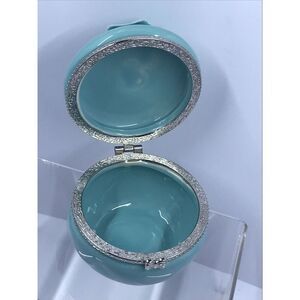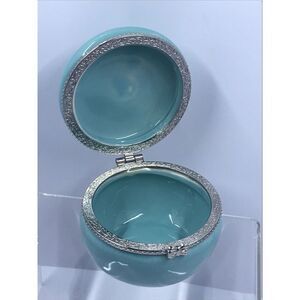 Cracker Barrel CERAMIC FLOWER TRINKET BOX 2.5"wide 2.5" tall Teal/Blue.