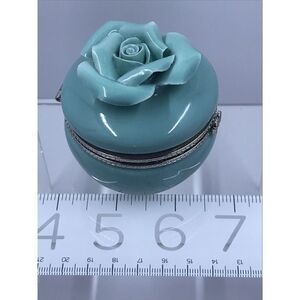 Cracker Barrel CERAMIC FLOWER TRINKET BOX 2.5"wide 2.5" tall Teal/Blue