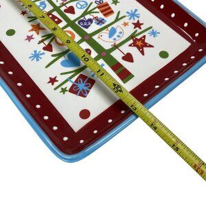 Every holiday season, a platter like this becomes the centerpiece of cherished family gatherings. The vibrant colors, adorned with symbols of peace and love, evoke joyful memories. Crafted with care, its charming Christmas tree design springs to life, bringing warmth and cheer to festive tablescapes, embodying the spirit of togetherness.
