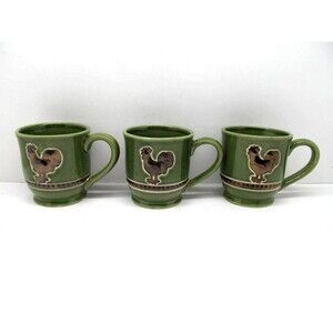Cracker Barrel Elegant Rooster Set Of 3 Green 4" X 3 3/4" Mugs EUC You Will Be Getting Three 4" X 3 3/4" Mugs In Excellent Condition. No Chips, Cracks, Or Repairs. No Issues. Do Not Appear To Have Been Used. They Will Be Wrapped Carefully And Fully Insured. They Come From A Smoke Free Environment. sb57