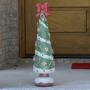 Add some holiday cheer to your indoor and outdoor space with this brand new Cracker Barrel gingerbread tree. Measuring 29.5 inches in height and 8 inches in width, this battery-operated tree is the perfect addition to your Christmas decor collection. Featuring a beautiful green color and a peppermint and candy cane theme, this tree is sure to impress your guests.