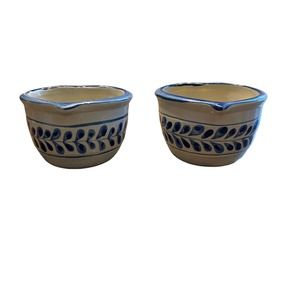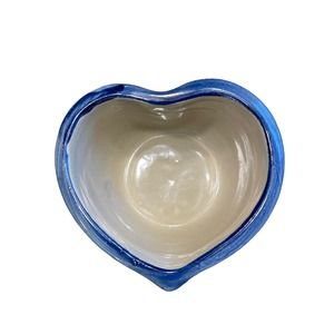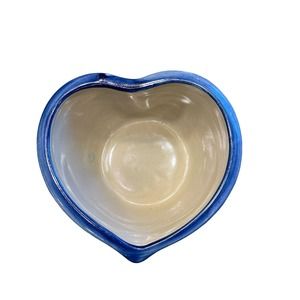 Cracker Barrel Pottery Made from Scratch Blue Leaf Small Heart Dish Bowl Set 2