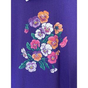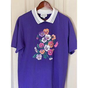 Cracker Barrel Purple S/S T-Shirt Women's Size L Floral Print w/ Collar